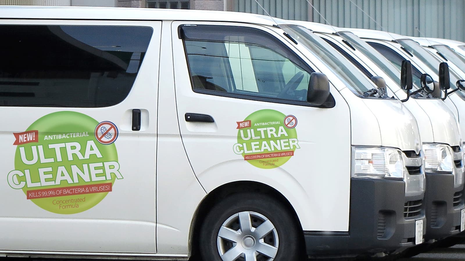 社用車が走る広告媒体に。高い耐久性と耐水性により、洗車をしても剥がれません。