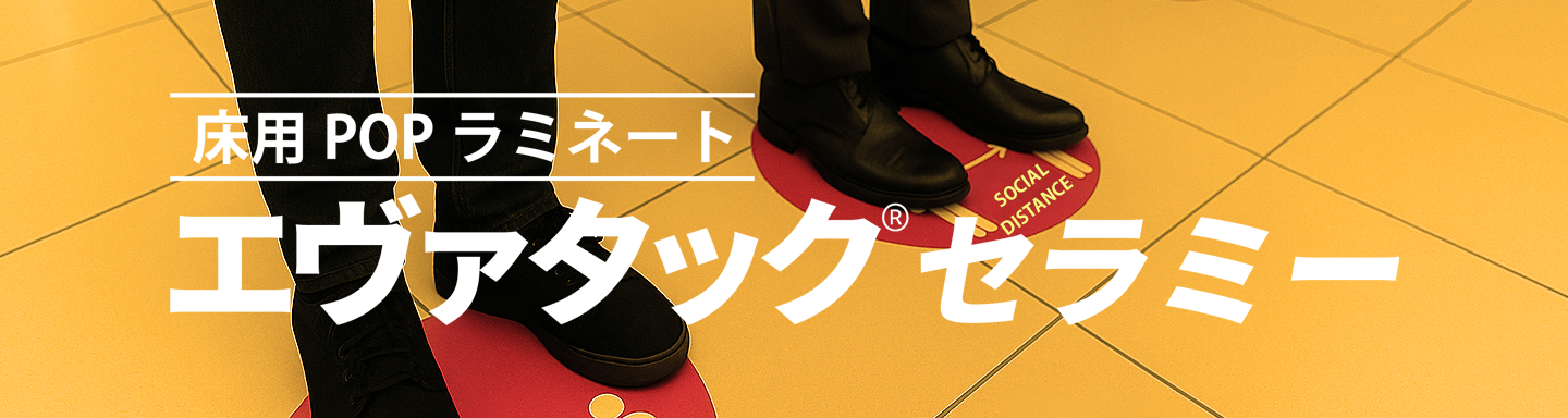 滑り止め機能が付いた粘着付き床用POPラミネートを開発。