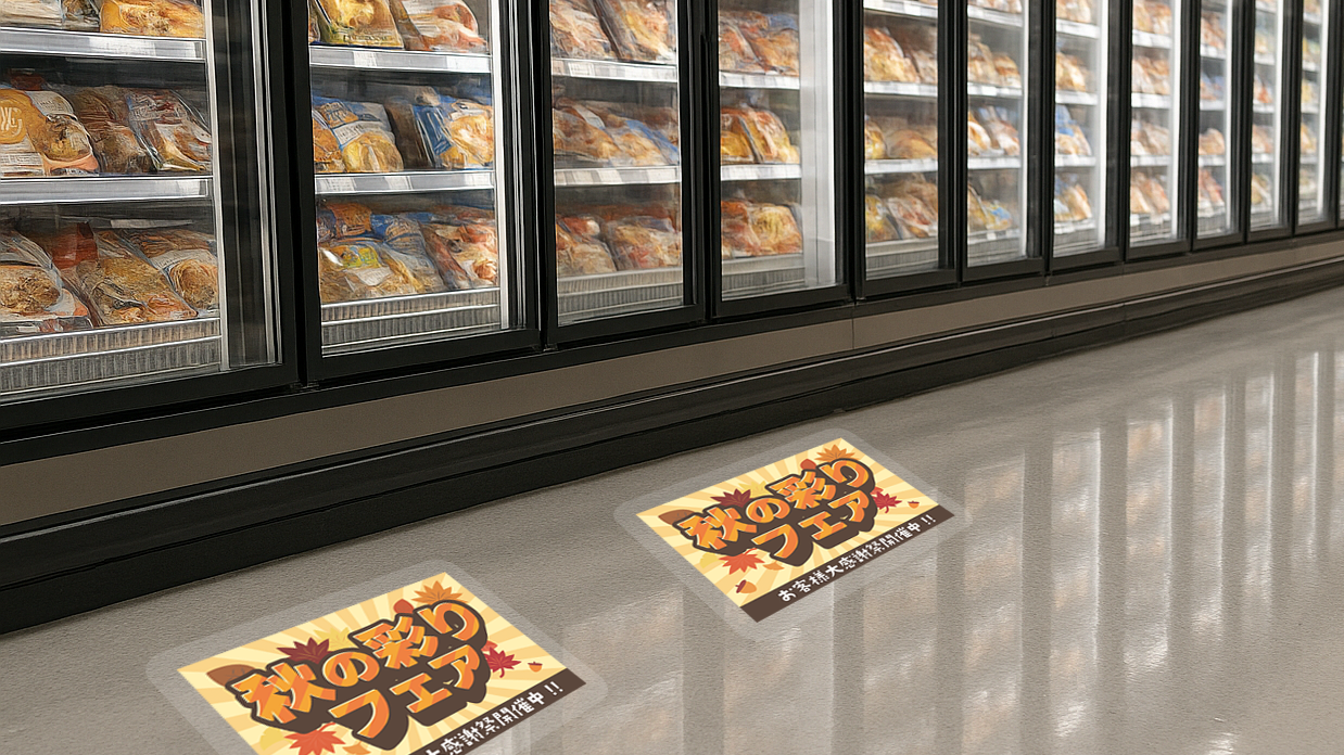 キャンペーンやセールなどの床用POP広告。